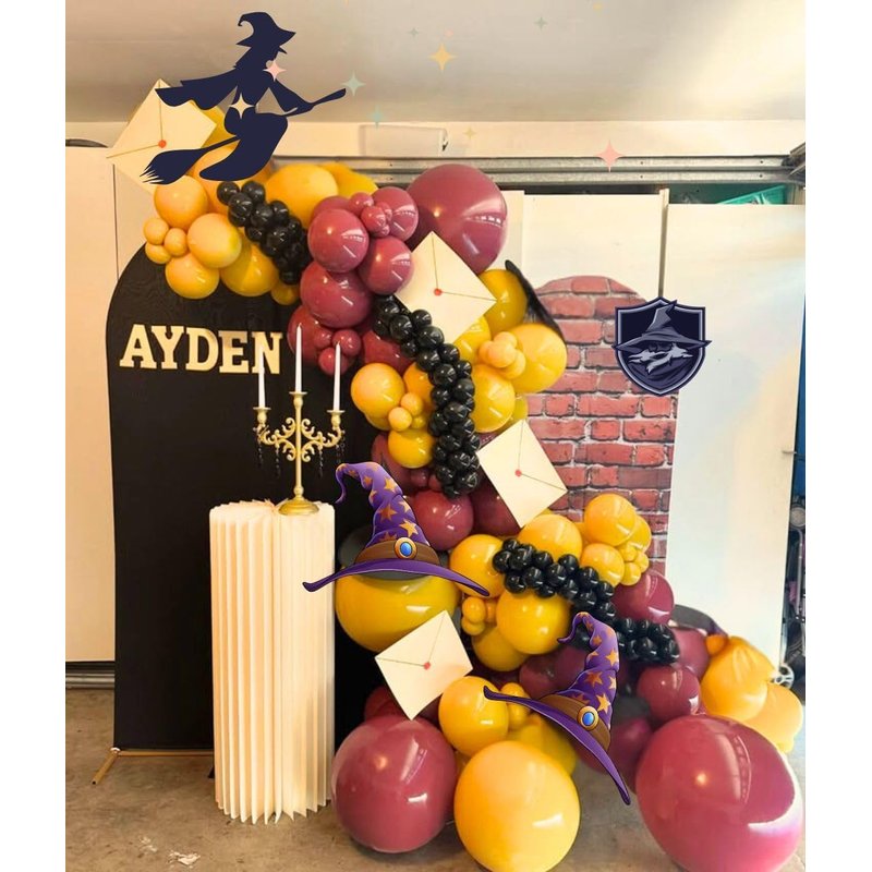 - 【VERSATILE USAGE】These Magical School Balloon Arch Kits are suitable for a wide range of events, as kids birthday party, magical creatures, circus, wizard or witch burgundy-themed party, baby shower, Halloween party decorations. Their unique color combinations make them a great choice for both casual and formal gatherings.