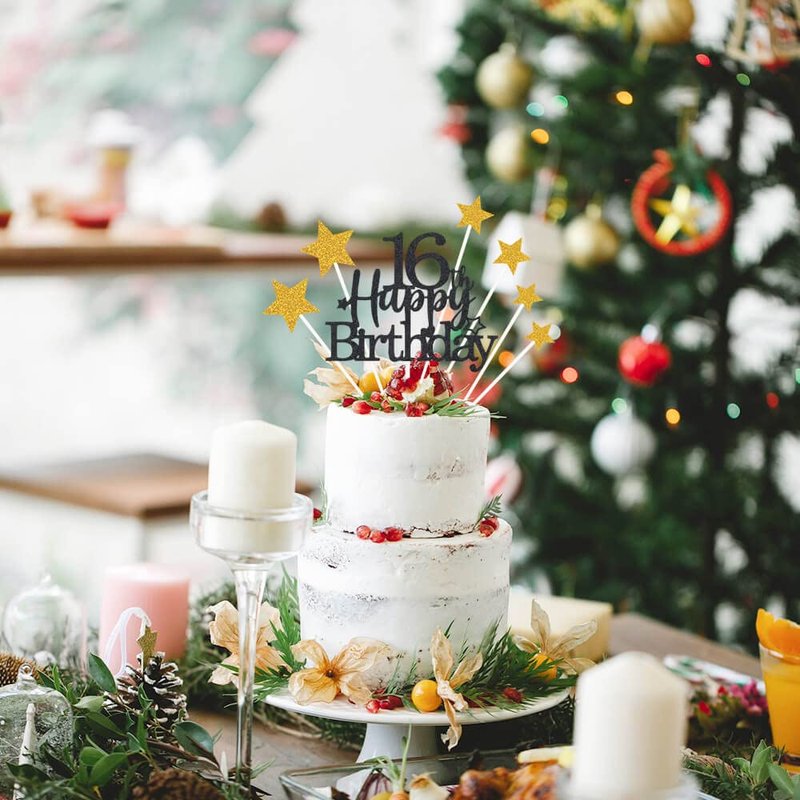 Pargleev Glittery 16th Happy Birthday Cake Topper with Star,Personalised 16 Birthday Cake Toppers Party Decorations Party Supplies for Boys Girls Black Gold