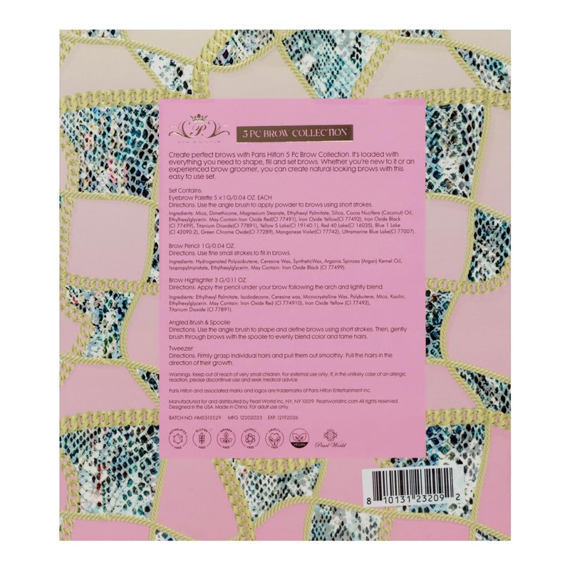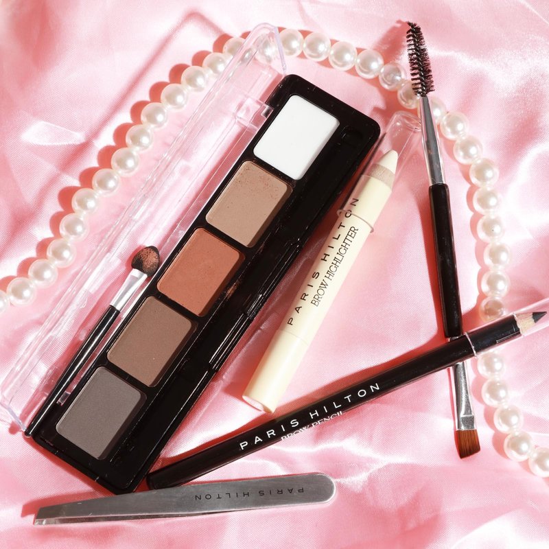 Paris Hilton Brow Collection Set - Eyebrow Makeup Palette with Brow Powder, Pencil, Highlighter,Spoolie,Tweezer - Waterproof Long Lasting Professional Kit for Women - Shape, Define Natural Look- 5 pcs