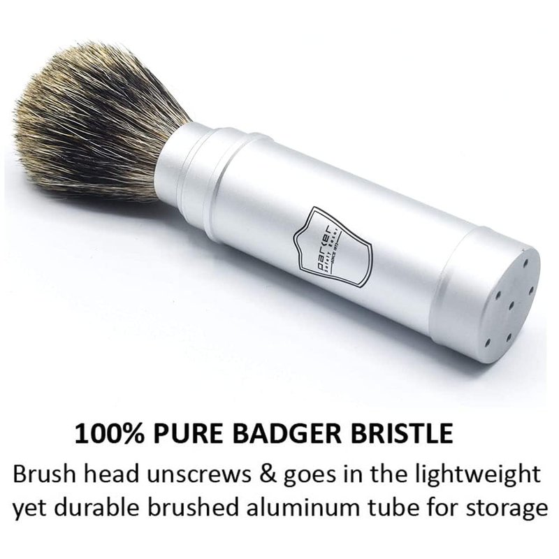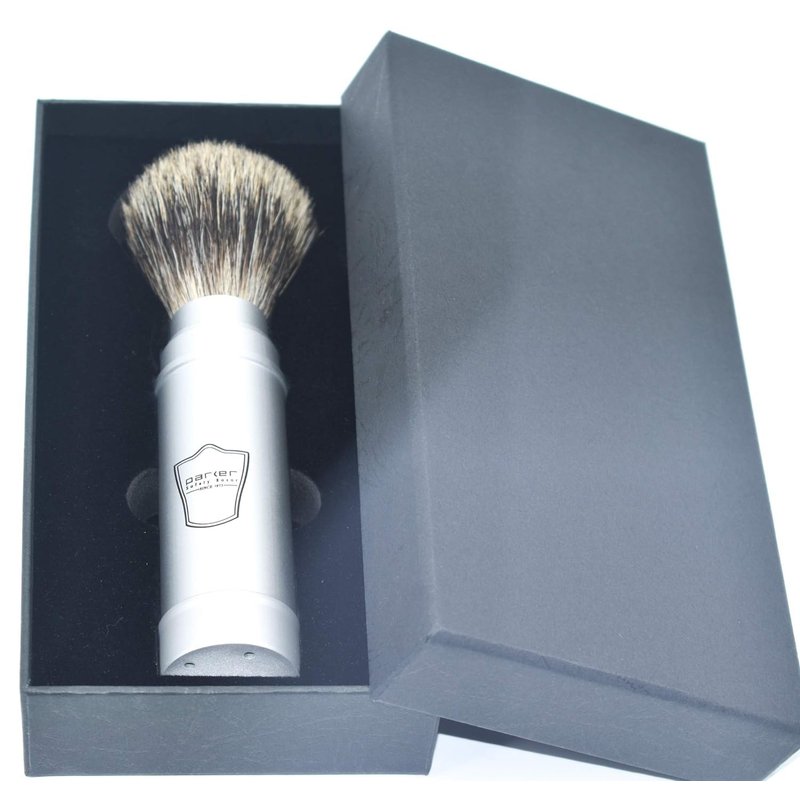 Parker Full Size Travel Shaving Brush with Pure Badger Bristles - Ingenious Design Stores the Brush Head in the Handle Making the Brush Compact for Travel