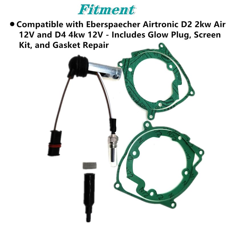 Parking Heaters Maintenance Kit Compatible with Eberspaecher Airtronic D2 2kw Air 12V and D4 4kw 12V - Includes Glow Plug, Screen Kit, and Gasket Repair
