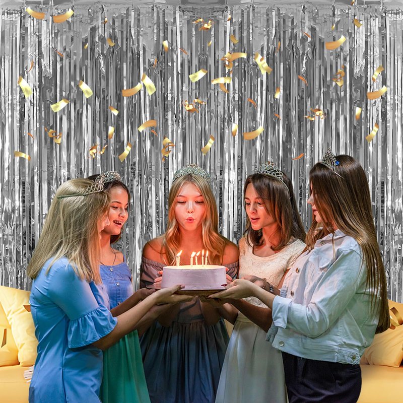 - [Warm Tips] 3 packs of the curtains side by side can get the better backdrop vision effect. When unwrapping the foil curtains, slowly unroll the pack and gently shake the tinsels to untangle any knots. You can cut the tinsel by scissors into the suitable Length and width for your party use.