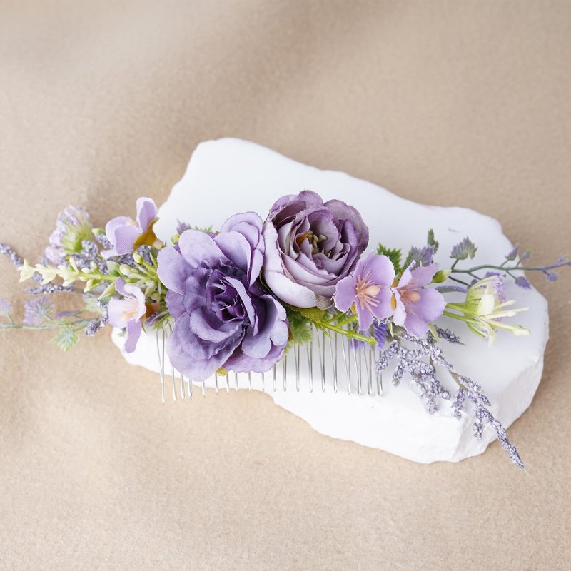 PartyforU Purple Flower Hair Comb - Handmade Wedding Floral Combs Bridal Comb for Hair for Bride Bridesmaid Women Girls Prom Bridal Shower Maternity Shoot