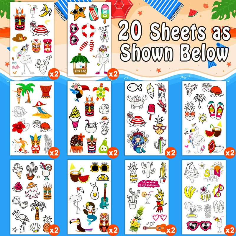 20 sheets (195 different styles) Hawaiian tattoos stickers for kids boys girls toddlers children.