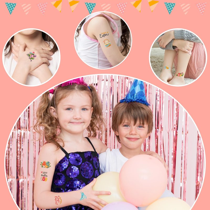 - 【Fun for Easter Party】These temporary tattoos are suitable for Easter party decorations, party supplies, party favors, kids basket stuffers, goodie bag fillers, games, prizes, accessories and so on. Let kids enjoy the Easter party!