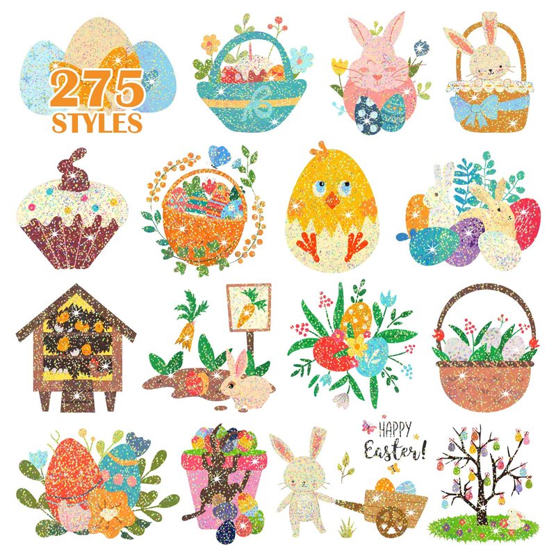 - 【Glitter Designs & No Duplicates】275 Styles (28 Sheets) Glitter Easter tattoos designed exclusively by Partywind, incorporating the most popular Easter elements. No repeating patterns and great choice as egg hunt games prizes to give your kids and guest a big surprise!