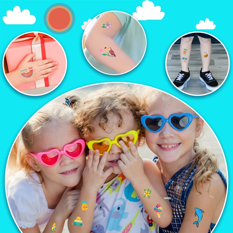 Partywind 28 Sheets Glitter Hawaiian Temporary Tattoos for Kids Party Supplies, Luau Tropical Pool Beach Party Decorations Favors, Waterproof Tattoo Stickers for Boys and Girls