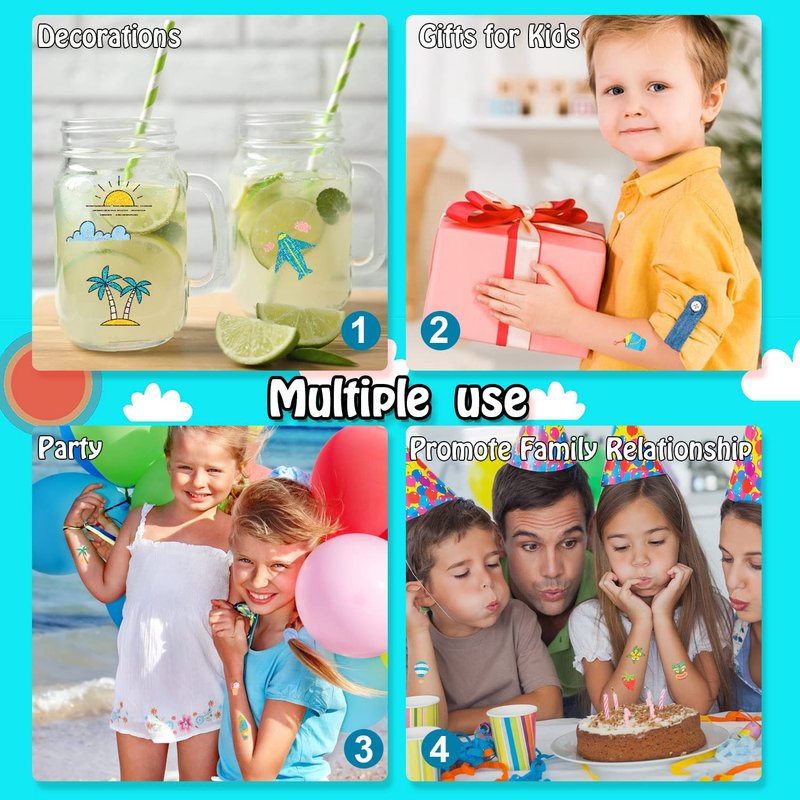 - 【Applicable Place】These fake tattoos are suitable for Hawaiian party supplies, party favors, luau/pool/tropical/beach party decorations, goodie bag stuffers and so on. You can also apply them to some smooth objects, such as glass, tile, water bottle, stainless steel, plastic, mobile phone case and so on.