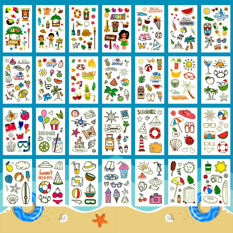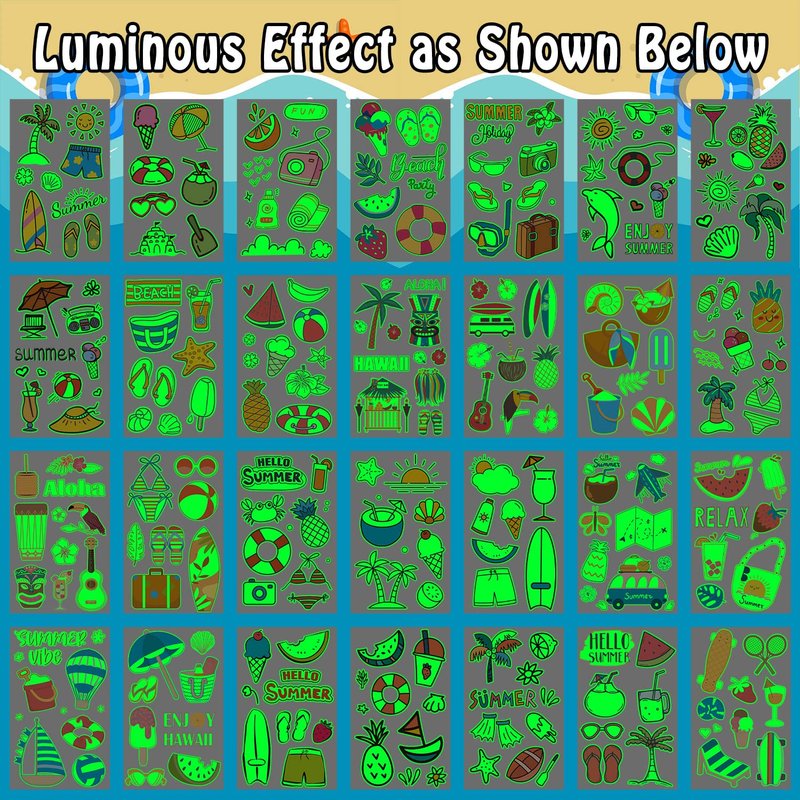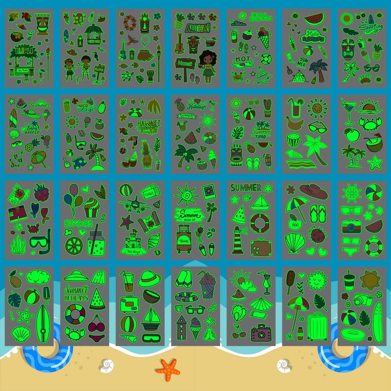 - 【Creative Hawaiian Party Favors that Will Glow!】These tattoos stickers are suitable for Hawaiian/luau/tropical/pool/beach kids party supplies, birthday party decorations, party favors, games. You can also apply them to your body or some smooth objects, such as glass, tile, water bottle, phone case and so on.