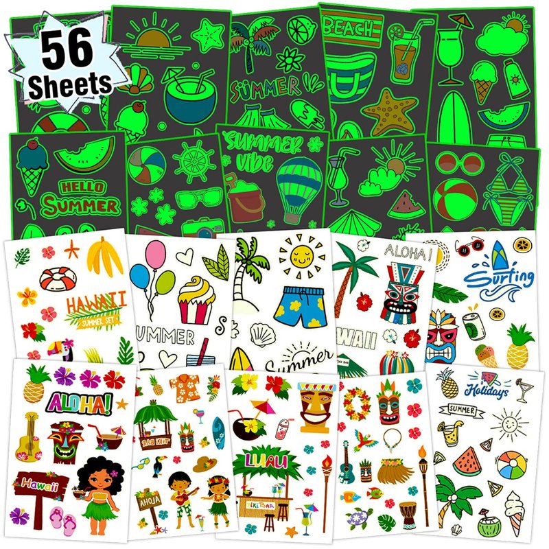56 Different sheets luminous Hawaiian temporary tattoos for kids boys girls.