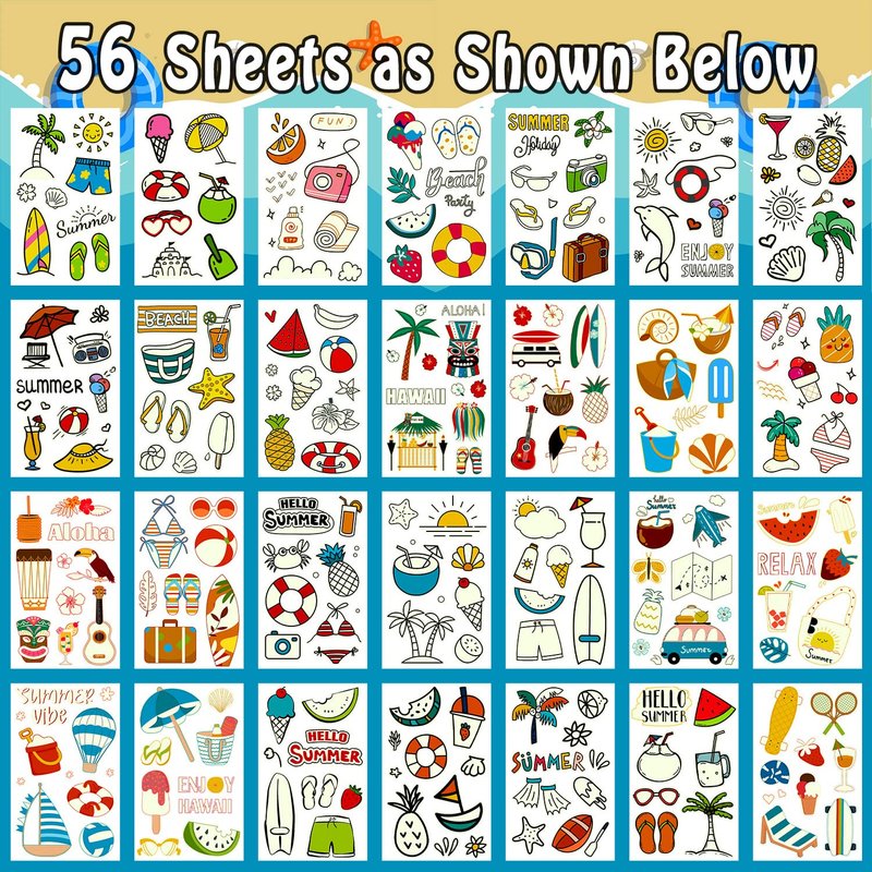 - 【Great Value Packs】We can offer you the most stickers at a favorable price! Package include 555 styles (56 Sheets) cute tattoos in total! Partywind temp tattoos undergo rigorous party testing, the fake tattoos will last all day or more.
