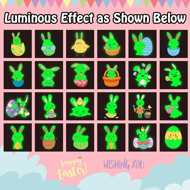 24 sheets (24 Different Styles) luminous Easter temporary tattoos for kids, boys, toddler, children.