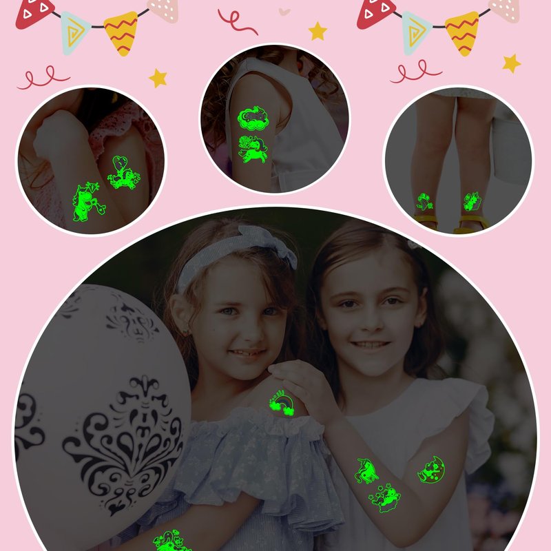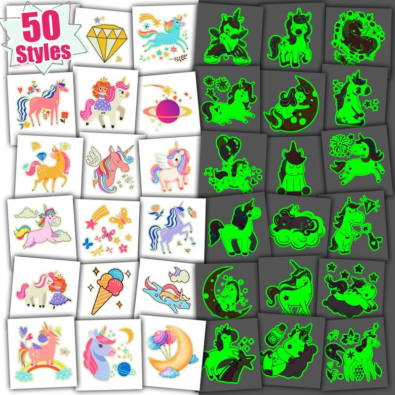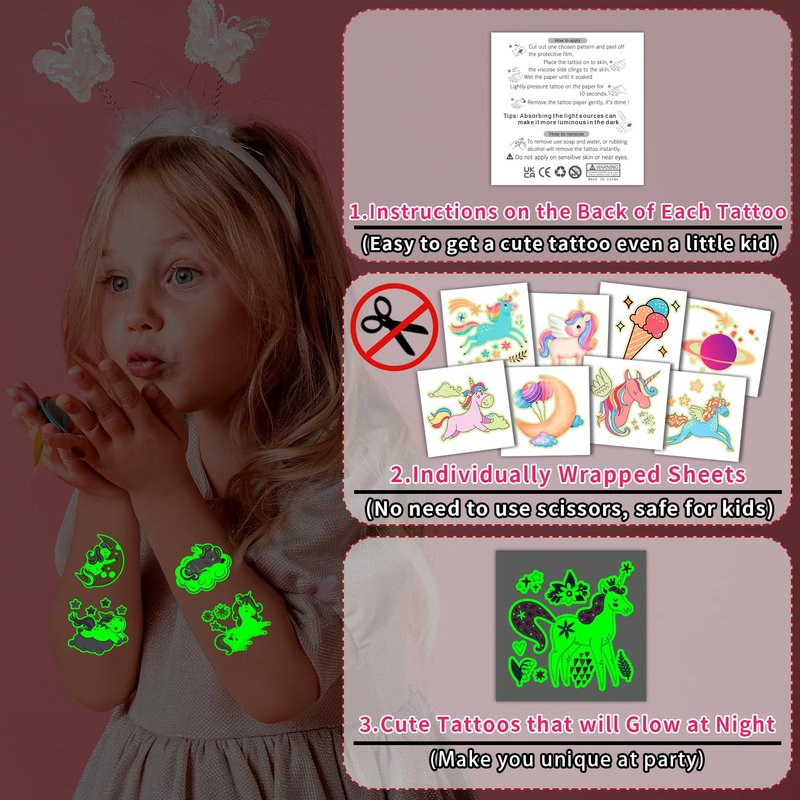 - 【Great Value Luminous Tattoos for Kids Girls】50 Styles new luminous style will make you glow at night. Even at a party with lots of friends, these glow temporary tattoos will make you unique in the crowd! Suitable for kids, children, toddler, baby.