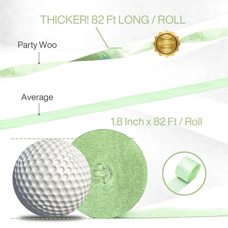PartyWoo Crepe Paper Streamers 4 Rolls 328ft, Pack of Crepe Paper Pearl Green Party Streamers, Crepe Paper for Birthday Decorations, Party Decorations, Baby Shower Decorations (1.8 in x 82 Ft/Roll)