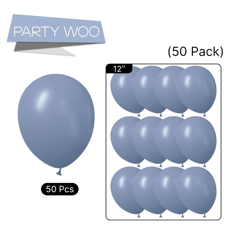 PartyWoo Dusty Blue Balloons, 50 pcs 12 Inch Purplish Boho Blue Balloons, Slate Blue Balloons for Balloon Garland or Arch as Party Decorations, Birthday Decorations, Baby Shower Decorations, Blue-F16