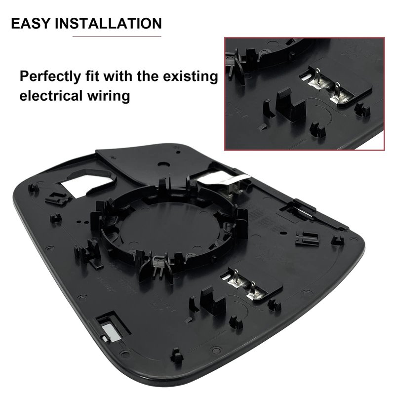 - EASY INSTALLATION - Identical mounting point with factory mirror. Perfectly fit with the existing electrical wiring. Wiring harness must be unplugged from existing backing plate and plugged into the new backing plate before installation. You can finish the installation in a few minutes. NOTE: THIS SIDE VIEW MIRROR WITHOUT AUTO DIMMING VERSION.