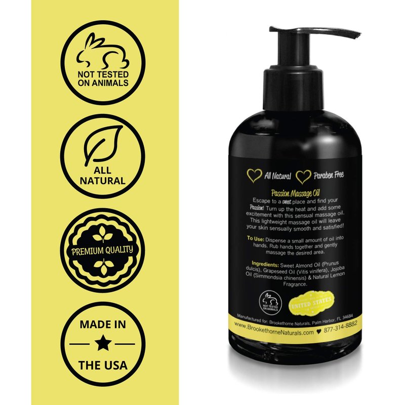 Passion Sensual Massage Oil for Couples – All Natural, Lemon Crème Scent with Almond Oil & Jojoba Oil. Natural Body Oil for Dry Skin. Massaging Oil for Romance & Relaxation – 8oz
