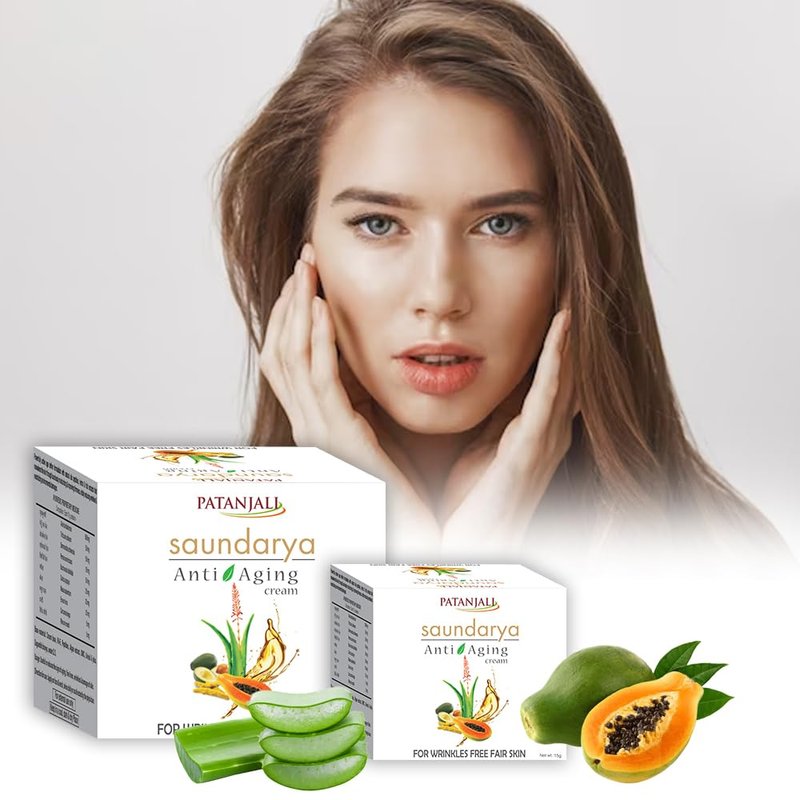 Patanjali Saundarya Anti-Aging Cream is a skincare product from Patanjali Ayurved Limited, known for its natural and Ayurvedic offerings. This cream is formulated with a blend of herbal and ayurvedic ingredients. For all skin types, and it can be used by both man and women.