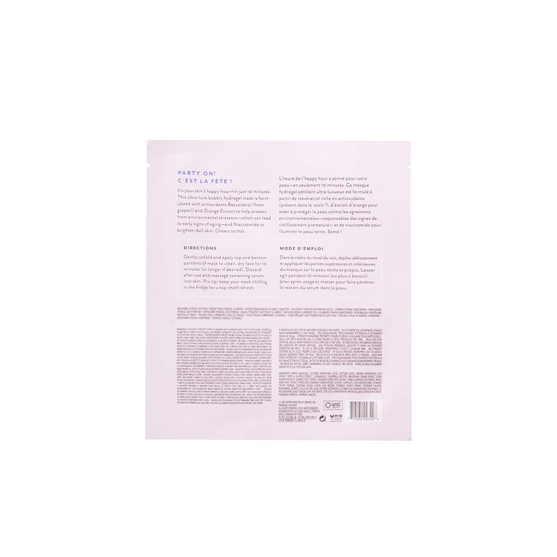 Celebrate your skin with a facial sheet mask that goes beyond the typical mask. Inspired by our Patchology Under Eye Gels, our BUBBLY HYDROGEL MASK uses our gel technology to deliver potent ingredients gently into your skin. Happy Hour starts in just 10 minutes! Just apply to your face and relax. This ultra-luxe bubbly hydrogel mask is formulated with antioxidants Resveratrol (from grapes!) and Orange Extract to help protect from environmental stressors—which can lead to early signs of aging—and Niacinamide to brighten dull under eyes. Cheers to that.