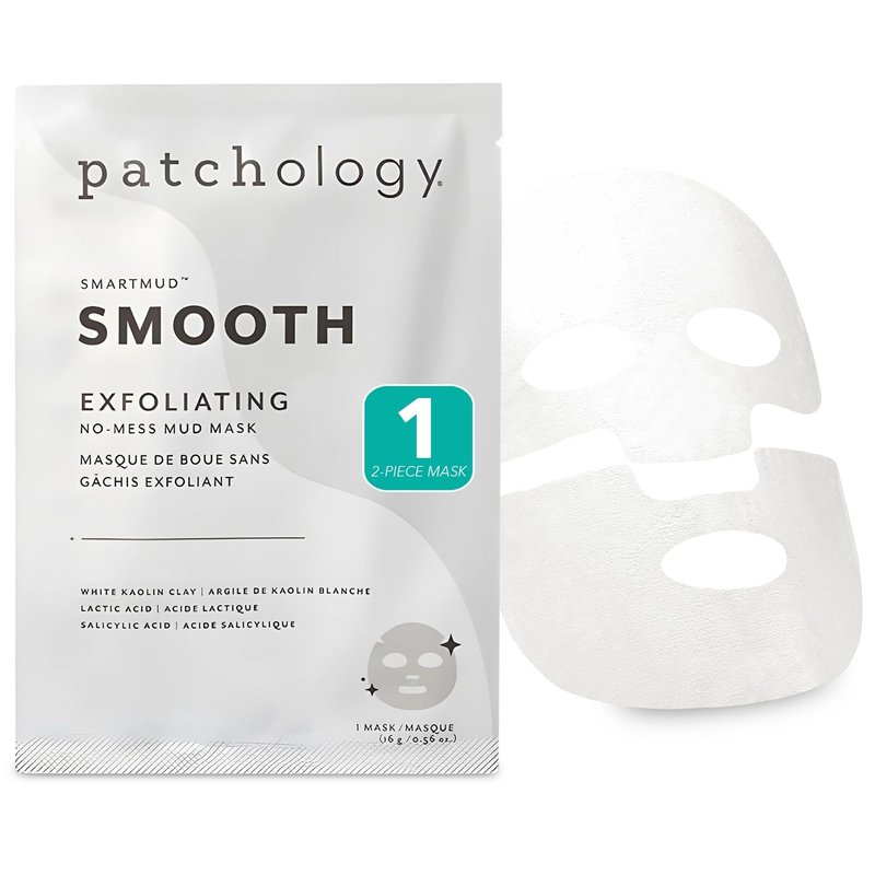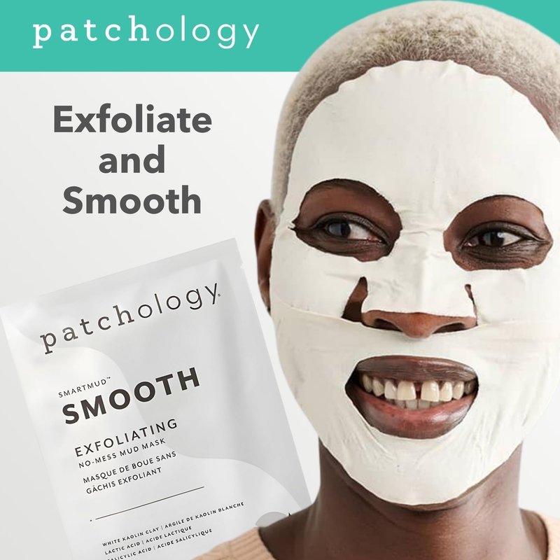 Patchology Smooth SmartMud Clay Mask For Face - No Mess White Kaolin Mud Mask w/Lactic Acid & Salicylic Acid for Exfoliating & Smoothing Skin - Face Mask Skin Care for Women & Men (1 Count)
