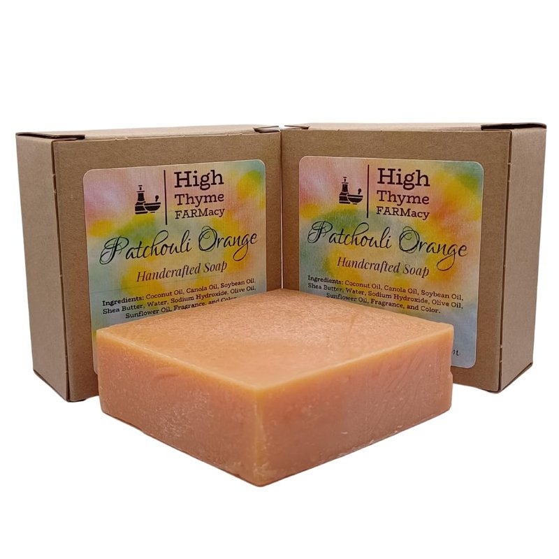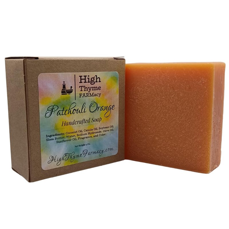 Introducing High Thyme FARMacy’s Patchouli Orange Soap – the perfect mens soap for any daily cleansing routine. This delightful 5-ounce bar of luxurious natural soap has been expertly crafted with a blend of patchouli oil and orange fragrance that gives it an invigorating but not overly earthy or sweet smell. Use as a hand soap bar to leave your hands feeling refreshed and utterly hydrated. It’s the ideal way to cleanse and tone everyday - this hand made soap bar is perfect for getting rid of impurities. If you suffer from dry skin, this Patchouli Orange Soap is perfect for restoring your skin back to its natural moisture content. You’ll find that with regular use your skin will be smoother, softer and more equipped to defend itself against elements both natural and artificial. Make High Thyme FARMacy’s scented soap bars part of your daily routine and enjoy the difference that a quality handcrafted aromatherapy soap bar can make. Enjoy softer, smoother skin that’s free from impurities! This Patchouli and Orange luxury Soap is made with an exquisite blend of some of the finest natural ingredients, including organic shea butter. Remove excess dirt and grime while nourishing oils leave behind a deeper layer of hydration. Let High Thyme FARMacy’s Patchouli Exfoliating Soap help you unlock the secret to smoother, softer skin - all while enjoying the therapeutic aromatherapy benefits of patchouli essential oil! Enjoy the vibrant aroma, soft texture, and nourishing ingredients as you pamper your skin. With our mens bar soap natural, bar hand soap, you can be sure that you’ll get the highest quality and most indulgent experience with every use. Our natural soaps are full of natural ingredients to help keep your skin looking its best, as well as essential fatty acids to help restore skin moisture and promote elasticity. Enjoy High Thyme FARMacy hand bar soap hand soap bars today!