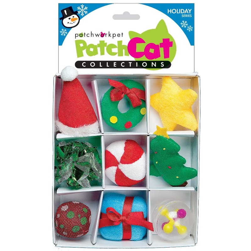 Patchwork Pet Holiday Theme Box Cat Toy 9pc Christmas Plush Set Premium Catnip