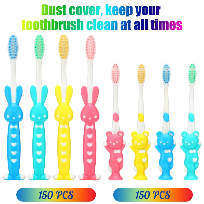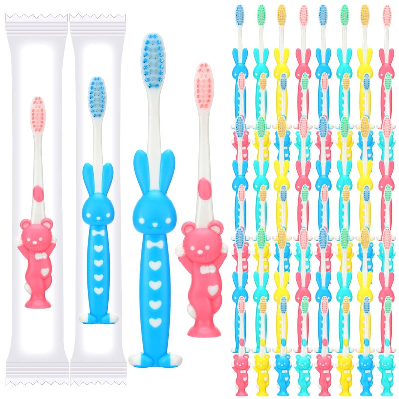 24 Pieces kids toothbrush children manual toothbrush set soft contoured bristles for age 3 and above boys and girls cute colorful toothbrush with suction cup (for storage) Feature: Quality material: Our toddler toothbrush adopts the soft bristle, gives your children a gentle cleaning. Soft brush head helps access areas that are hard to reach and achieve a more thorough cleaning, the brush handle is strong and durable. Designed for children of 3 years and older: What a delight for children who are learning to brush their teeth. These fun colorful kids toothbrushes will make brushing fun. Specification: Material: bristles, silicone and plastic Size: boys and girls aged 3 and above Color: as the pictures show Quantity: 24 pieces Package includes: 24 x Kids toothbrushes Note: Please allow a little error on the size due to manual measurement. The color might exist slightly difference due to different displays.