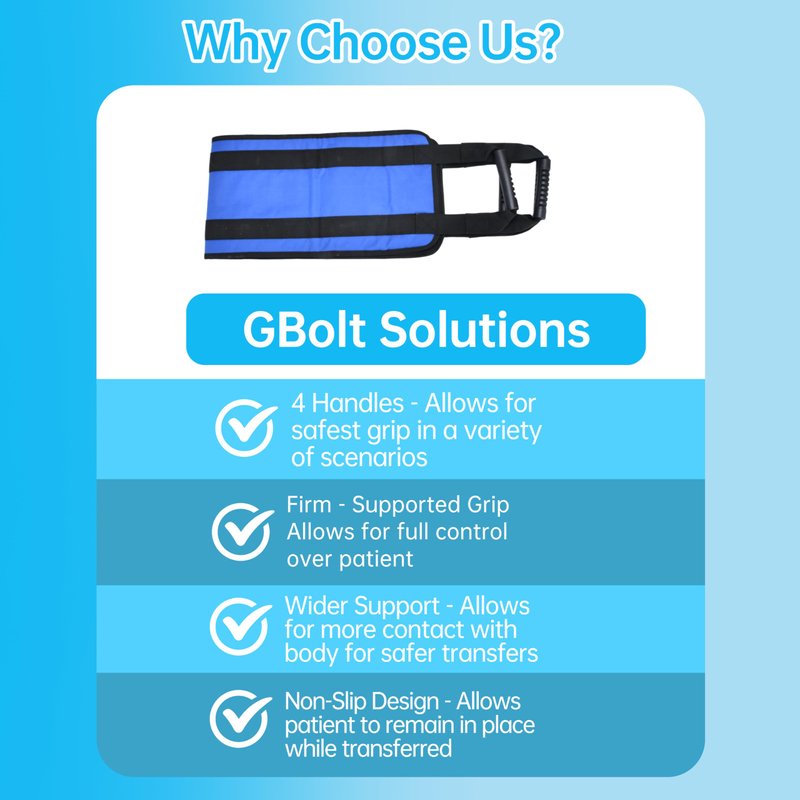 Our transfer belt & gait belt are the keys to making seemingly challenging tasks easy. Whether it's helping a patient stand or facilitating their movement, this mobility aid empowers caregivers to provide superior care. For those who dedicate their lives to caring for others, our transfer belt that comes with a carrying bag becomes an invaluable companion. It simplifies care-giving tasks, reduces physical strain, and ensures the safety and comfort of both the patient and caregiver. This Patient Lift & Transfer Belt is more than just an assistive device; it's a lifeline to improved patient care and a restored sense of dignity and independence. Transform the care-giving experience for your loved ones or patients with this essential tool. Experience the difference in patient mobility and care today with our amazing gait belt & transfer sling!