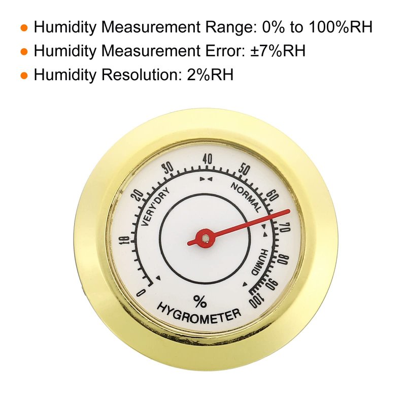 - Application: This is a mini round hygrometer with a clear number scale to facilitate real-time monitoring of weather moisture conditions to maintain humidity balance. It is widely used in room, bedroom, office, cars, planting, greenhouses, gardens, courtyards, kitchens, factories, warehouses, etc.