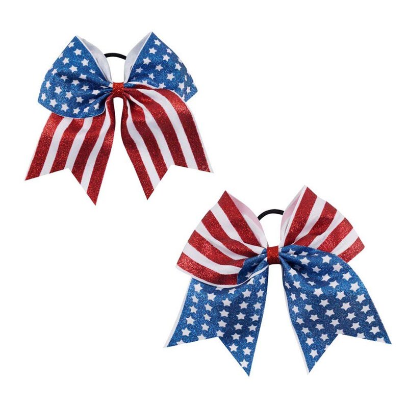 Patriotic Flag Cheer Ponytail Holder Girls Cheerleader Bowknot Hair Bow Tie JHN10 (2 Pcs-Set H)