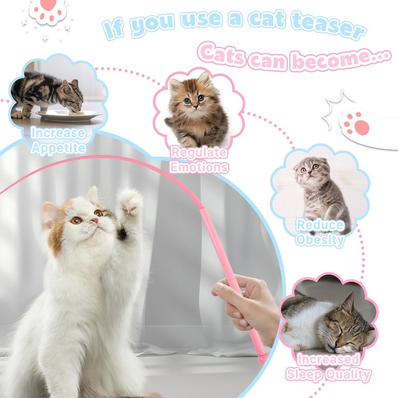 - Enhance affection: Interacting with cats by using cat stick toys can shorten the distance with cats and enhance the affection between you.