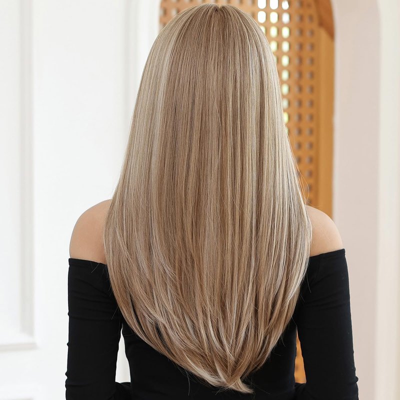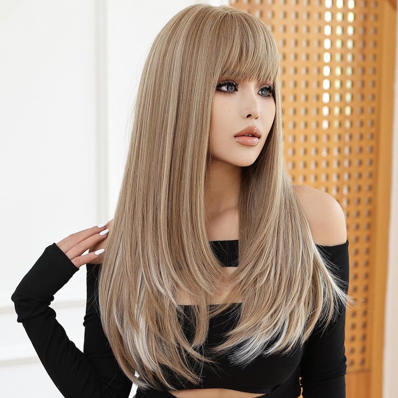PATTNIUM Long Blonde Wig with Bangs Ash Blonde Long Wigs for Women Long Straight Mixed Blonde Wig Heat Resistant Synthetic Wigs for Daily Party