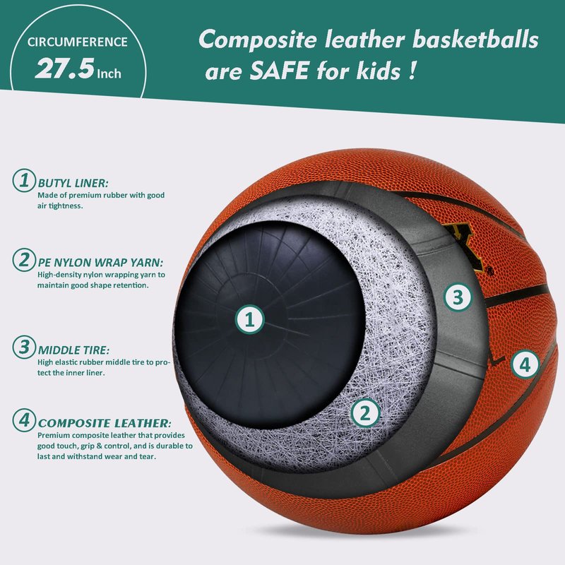 - INDOOR/OUTDOOR BASKETBALL: Whether they're shooting hoops indoors or playing in the backyard, the durable 27.5" youth basketball is suitable for both indoor and outdoor use. PATTONLEX junior size basketball made of composite leather cover and deep channel construction provide ultimate grip & control.