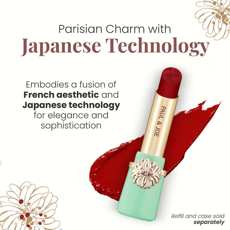 Be bold this spring, and let your lipstick reveal your uniqueness. Play up the colors that express the true you. Indulge in lipsticks that fuse seamlessly with the lips: Lipsticks are ready to deliver any look you desire at a single stroke, be they rich and deep or light and ethereal. PAUL & JOE BEAUTE lipstick has been updated to instantly deliver “happiness-radiating lips” with vivid color intensity, luster, and a comfortable seamless fit that improves the more you chat. Lipsticks that perfectly cater to positive self-expression while bringing overflowing happiness to time spent with loved ones encapsulate the Parisian joie de vivre that PAUL & JOE BEAUTE stands for.