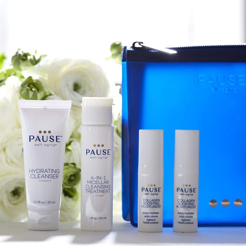 Pause Well-Aging Discovery Kit 0.7oz Hydrating Cleanser, 1oz 4-in-1 Micellar Cleansing Treatment, 2 x 0.17oz Collagen Boosting Mois Unisex 4 Pc