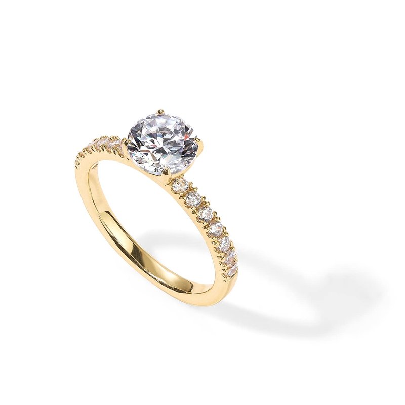 - This solitare engagement ring is plated in a thick layer of 14K Yellow Gold for a brilliant, long lasting finish and to ensure it's hypoallergenic / nickel free. Perfect to give to that special someone, used as a promise ring, or just a backup for travel.