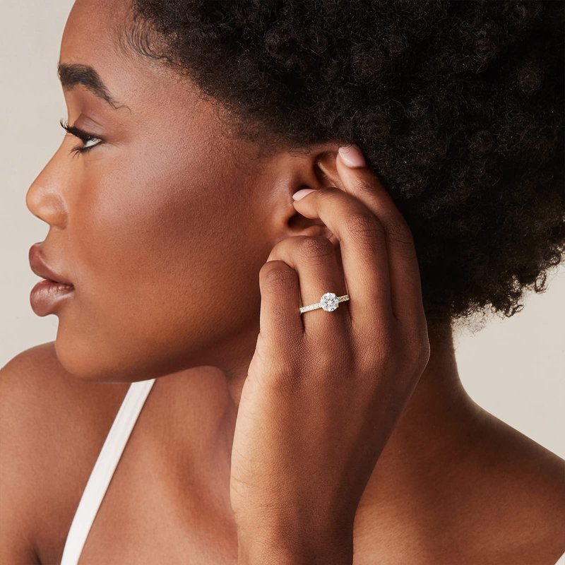 - This Gold Engagement Ring for Women is crafted with the finest 1.50 ct (7mm) 8 Hearts and 8 Arrows Cubic Zirconia. The split prong setting features pavé-set cz in a band measuring 2mm in width.