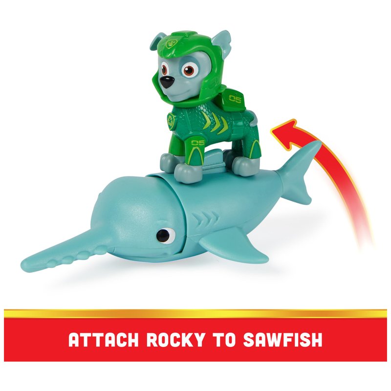 - PAWSOME SAWFISH PAL: It’s time for another super-charged rescue with Rocky and his Sawfish pal Put Rocky on Sawfish’s back and roll them forward to activate Sawfish’s head-swipe action