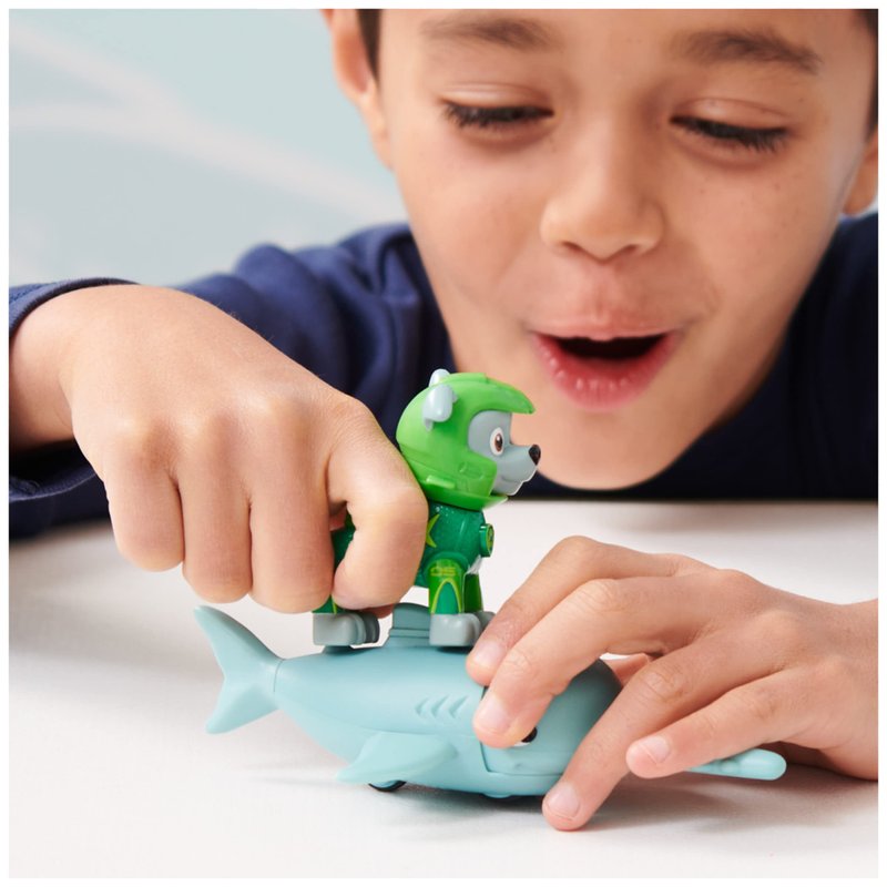 - EXCLUSIVE ROCKY ACTION FIGURE: Wearing his green Aqua Pups wetsuit, with true-to-show fish-scale details and a super cool divers helmet, Rocky is ready to roll out and save the day