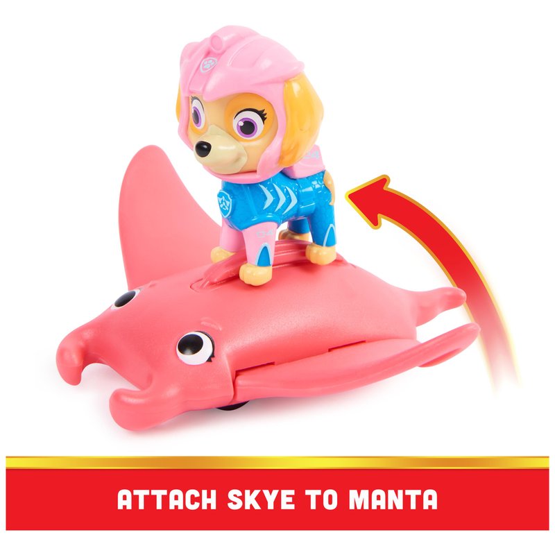 - PAWSOME MANTA RAY PAL: It’s time for another exciting rescue with Skye and her PAWsome Manta Ray pal! Attach Skye to her Manta Ray’s back and roll them forward to activate Manta’s wing-flap action!