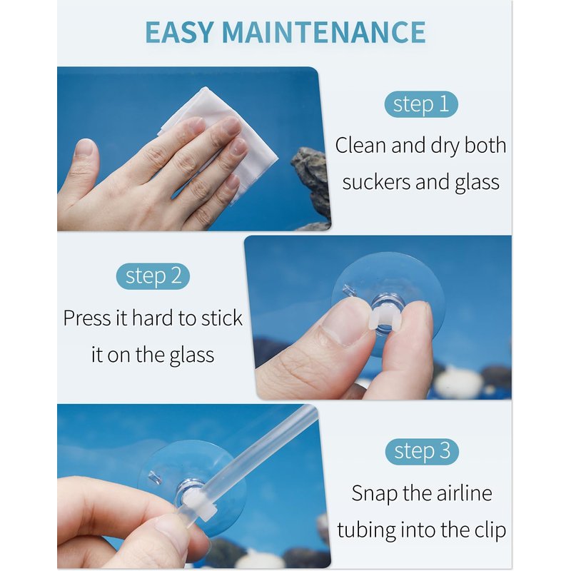 - For Standard Hoses: Each suction cup is 1.2" in diameter with a 0.2" clip. Perfect for holding standard 3/16" ID or 1/4" OD aquarium airline tubing or CO2 tubing.