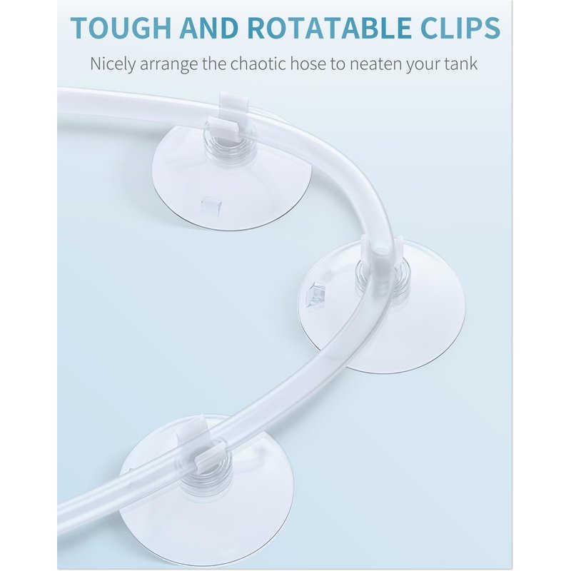 - Tough Plastic Clips: Each suction cup comes with a sturdy clip which firmly clamps the tubing to keep it in place. It is also rotatable to easily adjust the position of tubing.