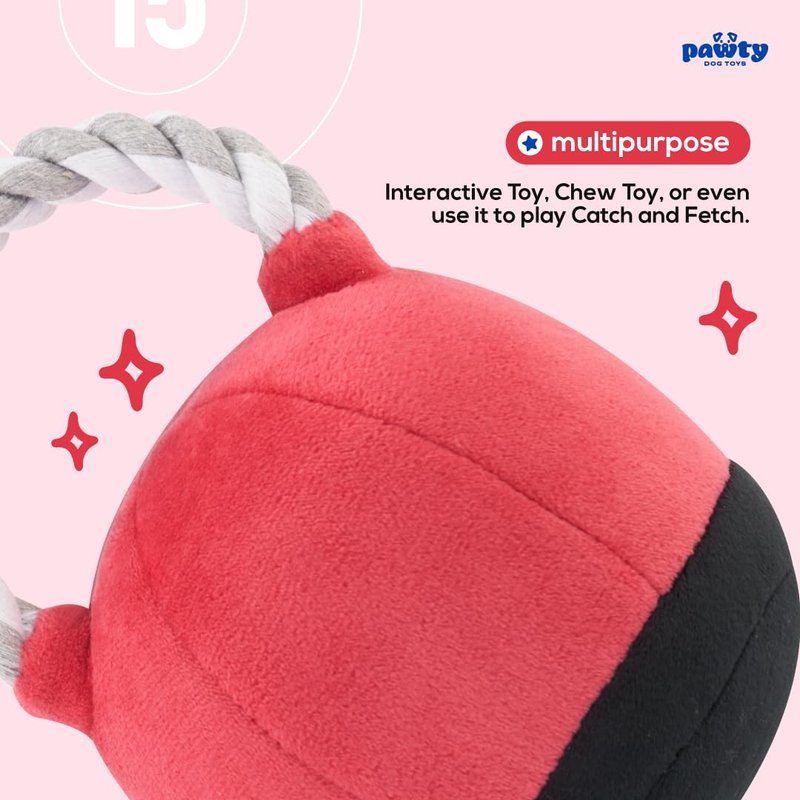 Pawty Dog Toys - Kettlebell Interactive Dog Toy - Parody Cute Plush Toy - Fetch & Tug of War - Parody Chew Toy - Cute Dog Gifts for Favorite Dog Birthday - Tough Chew Resistant Durable Strong Biters