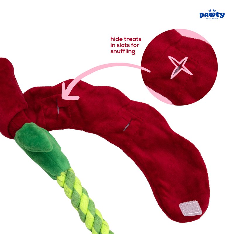 Pawty Dog Toys - Rose Feeder Toy - Hide and Sniff Treats in Neck - Soft Plush Toy with Treat Pockets - Small to Medium Dog - Durable Tug of War with Rope - Puppy Chew Toy for Teething/Stimulation