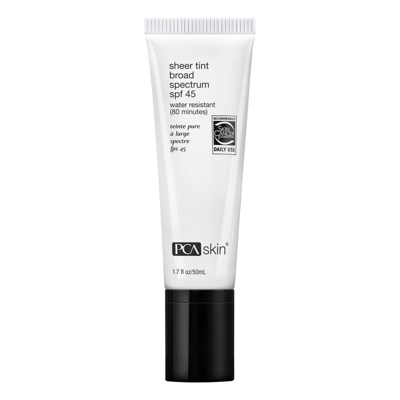 - PCA SKIN Sheer Tinted Sunscreen is a SPF 45 broad spectrum sunscreen that effortlessly blends into all skin types and can be used alone or layered under makeup
