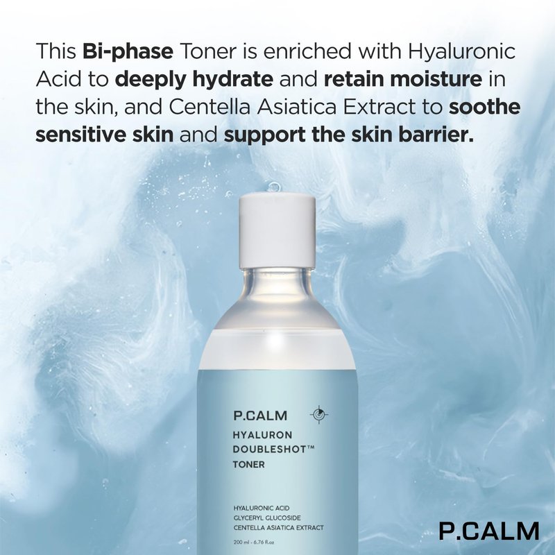 P.CALM Hyaluron Doubleshot Toner 200ml | Vegan Deep Hydrating Facial Toner with Hyaluronic Acid, Gryceryl Glucoside, Centella Asiatica for Sensitive Skin | Korean Skincare