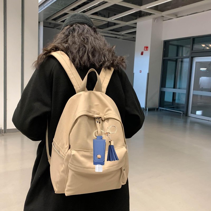 Pcmursal 3 Pack Small Hand Sanitizer Keychain Portable Leather Empty Bottles for Toiletry Shampoo Lotion Soap