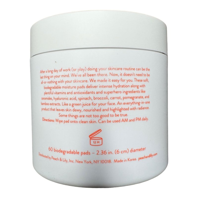 PEACH & LILY Lazy Day All-In-One Moisture Pads | Moisturize and Prepare Skin for Makeup | Hydrate & Revive | Broccoli, Carrot, Pomegranate Extracts & Panthenol | 60 biodegradable pads