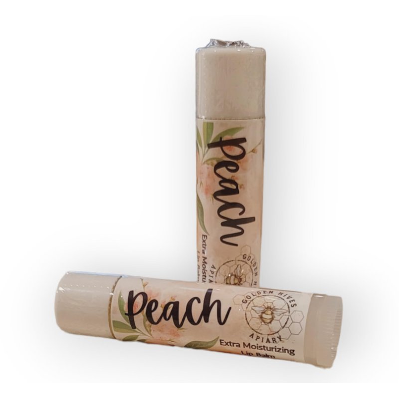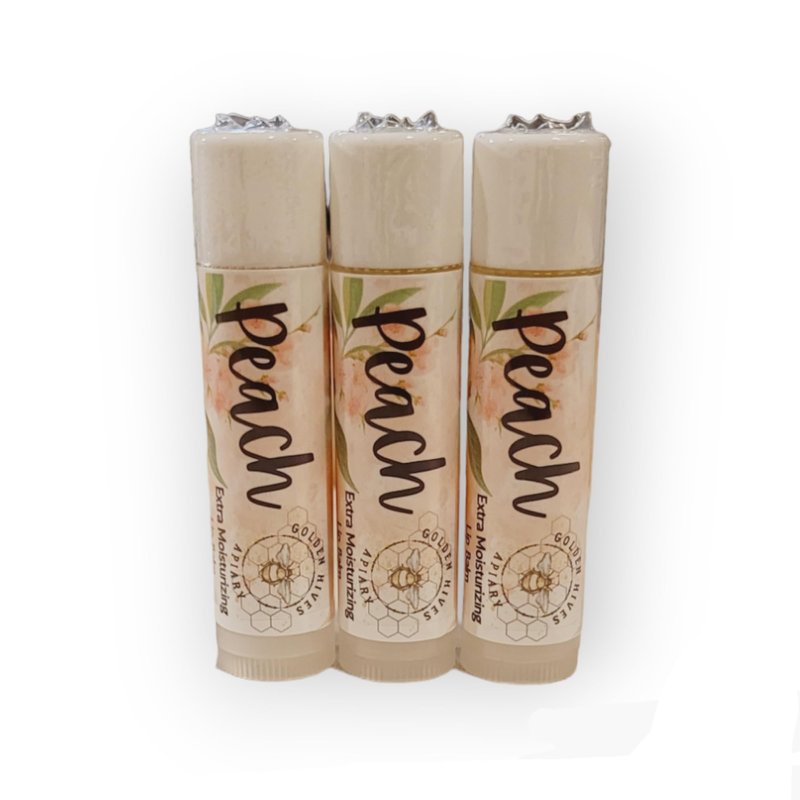Peach-Moisturizing Lip Balm With Raw Beeswax & Organic Cocoa Butter by Golden Hives Apiary (3 Pack)