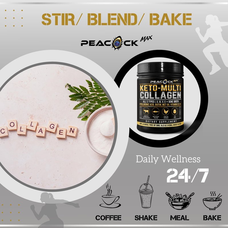 Peacock Max Hydrolyzed Multi Collagen Peptides Unflavored Protein Powder (1 Pack, Keto Coconut MCT)